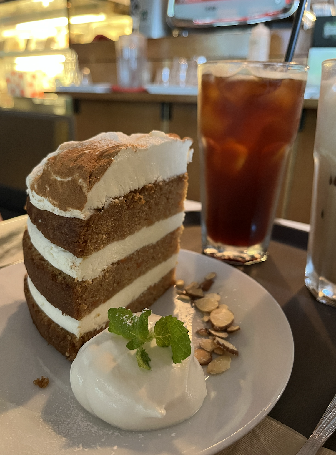 이 날 먹은 메뉴는 당근 케이크 9,900원, 아이스 아메리카노 4,900원, 아이스 밀크티 라떼 6,200원