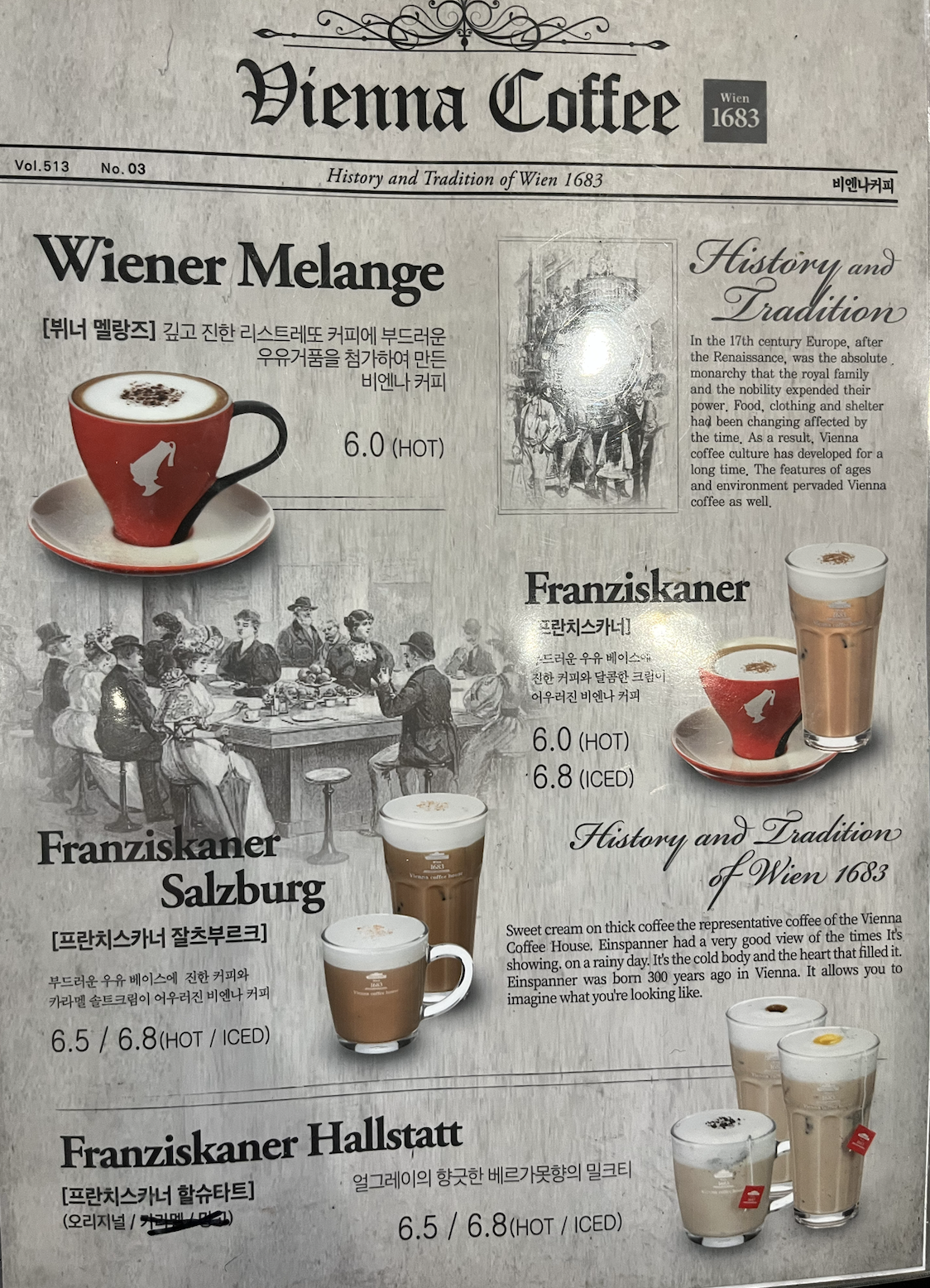 비엔나 커피 하우스라는 말처럼 '크림을 얹은 커피'가 주메뉴인 것 같다.